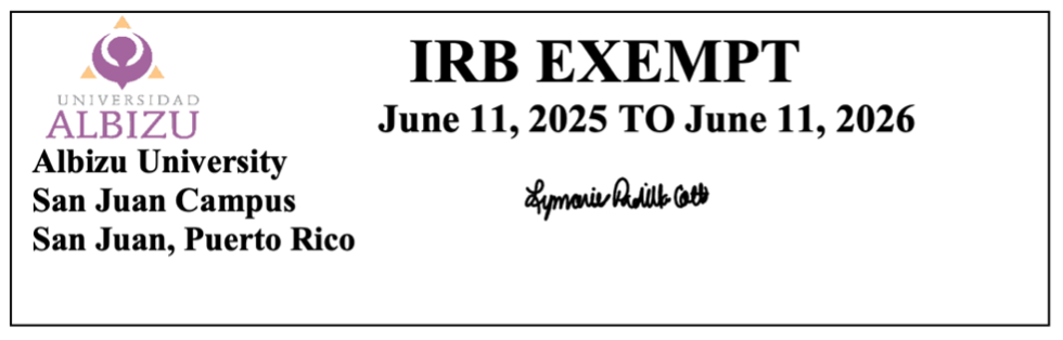 Además de las opciones provistas puede comunicarse con la investigadora principal Amanda Pérez Cabrera, al 787-614-9101 ([email protected]) y su Comité de Disertación, compuesto por la Dra. Keyla Rivera Rodríguez al 787-439-3336 ([email protected]), el Dr. Adam Rosario Rodríguez al 787-549-2762 ([email protected]) y la Dra. Rosaly Cartagena al 787-513-8413 ([email protected]).